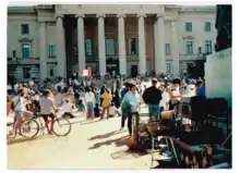 ![]() View of the steps of the Manitoba Legislative Building from the centre of the Peace Village demonstration | |
