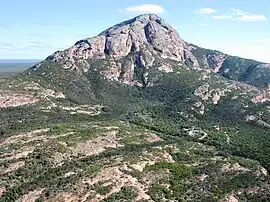 The park is named for one of the main features, Peak Charles,[4] which is an ancient granite peak with an elevation of 651 m (2,136 ft)[5] that dominates the park along with its neighbour Peak Eleanora.[6] Both afford excellent views over the park, which is primarily composed of dry sand plain heaths and salt lake systems.[7][8]