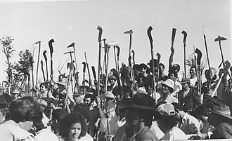 The peasant leagues (Portuguese: ligas camponesas) were social organizations composed of sharecroppers, subsistence farmers and other small agriculturalists. They originated in the agreste region of Northeastern Brazil in the 1950s. They were organized by the Brazilian Communist Party (PCB),[1] and were later picked up by Francisco Julião, a member of the Democratic Labor Party (PDT) and other socialists. Founded to improve the standard of living for rural workers, their later objective became to oppose the power of latifundia in the region.[2]