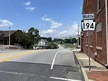 The portion of current PA 194 southwest of Hanover dates back to the 18th century as a section of the Monocacy Road connecting Hanover to Frederick, Maryland.[5] The section of the road between Littlestown and Hanover was a private turnpike called the Hanover and Littlestown Turnpike while the portion between Hanover and East Berlin was the Hanover and East Berlin Turnpike, both dating to the 19th century.[6] When Pennsylvania first legislated routes in 1911, present-day PA 194 was designated as part of Legislative Route 230 between Littlestown and Hanover and as part of Legislative Route 190 between Hanover and Abbottstown.[7] PA 194 was designated in 1928 to run from US 140 (now PA 97) in Littlestown north to PA 74 south of Dillsburg, following its current alignment between the two points. At this time, the entire length of the route was paved. The road between the Maryland border and Littlestown was an unnumbered, paved road.[8] By 1930, PA 194 was extended southwest from Littlestown to the Maryland border.[9] In the 1940s, the route was widened between the border of York and Adams counties and the northern border of Hanover.[10] By 1965, PA 116 and PA 194 were split into a one-way pair through downtown Hanover.[11] In May 2002, a roundabout was proposed at the intersection with US 30 in Abbottstown in order to improve safety and reduce congestion along PA 194 for traffic having to stop at the intersection.[12] The intersection at US 30 in the center of Abbottstown was converted to a roundabout in December 2002.[13]