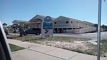 The Gulf Pier has been called an iconic part of Pensacola Beach by residents. It is maintained by Escambia County Public Works and the Santa Rosa Island Authority.[28] In addition to fishing,[29] the pier offers sightseeing marine wildlife such as dolphins and stingrays.[30][31] It has been closed and renovated a number of times due to storm and hurricane damage.[32][33][34]