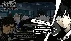 Persona 5 is a role-playing video game where the player takes on the role of a male high school student, codenamed Joker, who lives out a single year while attending school in modern-day Tokyo. The game is governed by a day-night cycle and weather systems that determine general behavior, similar to a social simulation game. The year is punctuated by scripted and random events as Joker attends school, and outside of school he can have part-time jobs, pursue leisure activities, or create battle items.[1][2][3][4] Joker's activities in the real world affect his social statistics; increasing these values grants additional activities and options.[5] When in the real world, Joker can develop character relationships known as "Confidants"; an evolution of the "Social Link" system from Persona 3 and Persona 4. With this system, he can converse with and improve his relationship with other characters he meets, with some leading to possible romances. Improving Confidant ranks with party members unlocks various abilities for use in combat.[3] Improving ranks with non-party Confidants grants other bonuses, such as access to new equipment or boosting experience point gains.[3]