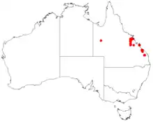 This persoonia grows in forest on near-coastal ranges at altitudes of 150 to 700 m (490 to 2,300 ft), mainly between Eungella and Biggenden.[3]