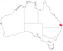 This geebung grows in eucalypt forest at altitudes from 400 to 600 m (1,300 to 2,000 ft) in the Conondale and D'Aguilar Ranges in south-eastern Queensland.[3][4]
