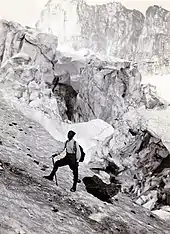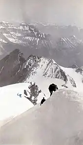 Peter Kaufmann-Bohren travelled to Canada in 1930, leaving Cherboug, France, aboard the S.S. Montrose on June 5, arriving in Quebec City June 13, and in Banff June 17.[23] He had been hired by Oliver Eaton Cromwell (1892–1987)[24][25] to do climbing in the Canadian Rockies. However, upon his arrival, Kaufmann travelled into the Yoho Valley to meet James Monroe Thorington (1894–1989),[26] who says that "Kaufmann was loaned to me for the time preceding Cromwell's arrival."[27]