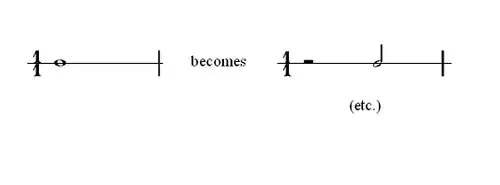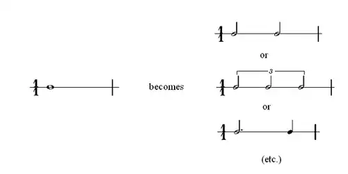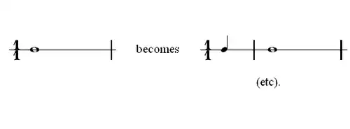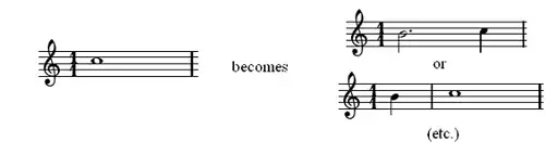 2. inserting, in the second segment, a note whose pitch is an adjacent member of the appropriate diatonic collection (while leaving a note of the original pitch to occupy the first segment).