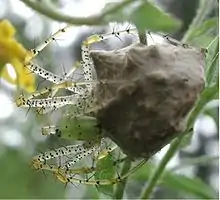- ↑ Weems, H. V., Jr. and Whitcomb, W. H. Green Lynx Spider, Peucetia viridans (Hentz) (Arachnida: Araneae: Oxyopidae). EENY-249 Entomology and Nematology Department, Florida Cooperative Extension Service, Institute of Food and Agricultural Sciences, University of Florida. Published: November 2001. Revised March 2011
