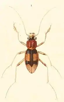Phaeoxantha bifasciata is a species of tiger beetle in the subfamily Cicindelinae that was described by Brullé in 1837, though for most of the past 200 years it has erroneously been recognized under the name aequinoctialis, a name based on a misidentified bombardier beetle (Pheropsophus aequinoctialis).[1] The species is found in South American countries like Argentina, Bolivia, Brazil, Colombia, Ecuador, French Guiana, Peru, and Venezuela.[1]