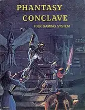 The fantasy role-playing game rules of Phantasy Conclave, a class-and-level system derived from D&D/AD&D,[1] were first developed at a gaming club, the Phantasy Conclave.[2] The setting of the system is a world called Arth, where a cataclysm of magic has changed the world and resulted in two new races (avian aerlings and sea-dwelling meren) in addition to the five standard fantasy role-playing races (humans, halflings, dwarves, elves, gnomes).[1]