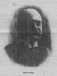 Philip H. Diehl (January 29, 1847 April 7, 1913) was a German-American mechanical engineer and inventor who held several U.S. patents, including electric incandescent lamps, electric motors for sewing machines and other uses, and ceiling fans. Diehl was a contemporary of Thomas Edison and his inventions caused Edison to reduce the price of his incandescent bulb.
