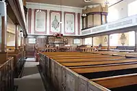 The Doddridge United Reformed Church (formerly the Castle Hill URC) in Doddridge Street, Northampton, was formerly Congregational, Doddridge and Commercial Street URC. It was the scene of the ministry of Doddridge from 1729 to 1751. The church was founded in 1662, built in 1695 and enlarged in 1842. It united with Commercial Street church in 1959 and became a United Reformed Church in 1972. The interior has galleries and box pews and a memorial to Doddridge.[13] The building was Grade II listed by English Heritage in 1952.[14]