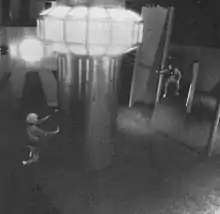 While primitive compared to technology today, entailing wearing 15 pounds of battery packs and equipment, Photon was one of the first video game-like experiences that one could play in the real world.[1] The arenas featured multiple levels, catwalks, mazes, and an observation deck where people not participating could cheer on their friends in the game, or get target practice by shooting players from special token-operated emplacements. (Shots from observation deck guns did not affect the game in any way at most arenas.) This contrasted sharply with competing laser-tag centers, whose fields were small, single-level, composed of clusters of free-standing painted cardboard barriers, and typically contained no observation area of any sort. Also, in Photon, players were allowed to roam at will through the entire playing field rather than be restricted to team-specific zones.