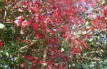 The mountain's steep sides are home to a succession of tropical forest tiers, namely (in ascending order): deciduous dipterocarp, mixed deciduous, dry evergreen, and hill evergreen forests, interspersed with bamboo. In contrast to that, the plateau at the mountain top consists of a sandy pine savanna landscape. Dominant tree species are Siamese sal (Shorea obtusa), Shorea siamensis, Diospyros spp., Lagerstroemia spp., Podocarpus neriifolius, maple, Pinus latteri, and Pinus kesiya. The grass fields support a variety of flowers, such as Hydrocera triflora, Torenia fournieri and marigolds. These flowers bloom at different times of the year. Some grow well in the rocky fields including Dendrobium sp. Close to the ground are ferns, mosses, and Serissa sp.[1] Lady's slipper orchids such as Paphiopedilum grow on trees.[7]: 121