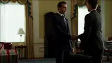 Harvey Specter (Gabriel Macht) and Mike Ross (Patrick J. Adams) meet for the first time.