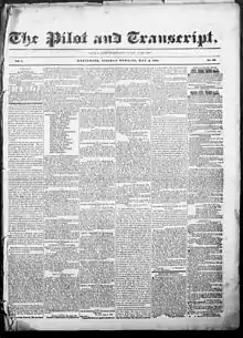 1. 1 2 About The pilot and transcript. (Baltimore, Md.) 1840-1841. Chronicling America. Library of Congress. http://chroniclingamerica.loc.gov/lccn/sn83016475/.
