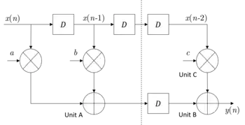 Consider a 3-tap FIR filter:[1]