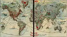 Pirate and Traveler is a board game published by Milton Bradley in 1911. Revised editions were published in 1936, 1953, 1956, 1960, and 1970. Details of the game board, travel cards, spinner, pawns and box art varied between edition years. The game is no longer in production and is now considered a vintage collectible board game.[1]
