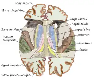 - ↑ Dorsaint-Pierre R, Penhune VB, Watkins KE, et al. (May 2006). "Asymmetries of the planum temporale and Heschl's gyrus: relationship to language lateralization". Brain. 129 (Pt 5): 1164–76. doi:10.1093/brain/awl055. PMID 16537567.