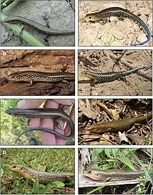 | Plestiodon chinensis formosensis (left) and Plestiodon leucostictus (right) | |
