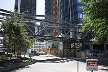 Facing north, Plus 15 sign and covered walkway linking the TC Energy Tower (formerly TransCanada Tower) (east) and Fifth Avenue Place