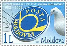 ![]() Moldovan stamp with the Poșta Moldovei logo commemorating its 15th anniversary | |