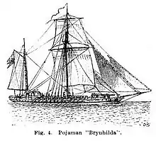 Line drawing of the Brynhilda, one of the three pojamas built for the Swedish navy