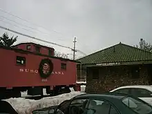 General George Washington and his army stayed in the Pompton area twice during the course of the war, and he visited the Yellow Tavern both times.[30] He first visited on July 11, 1777, when he met with local ironmaster Robert Erskine at the tavern. François-Jean de Chastellux, a major general in the French Expeditionary Force led by General Rochambeau, visited the Yellow Tavern on his way from Philadelphia to New England in December 1780, and remarked on his experience there in an account published later.[29] Washington returned to the tavern on March 30, 1782, as he traveled north with his wife Martha.[29] During this time, it was serving as the winter headquarters of Colonel Phillip Van Cortlandt. The tavern was torn down around 1900 to widen the adjacent road, and the site is noted by a historical marker.