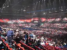 Editors were one of the leading bands of the indie and post-punk revival that spread across Europe and America during the first years of the 21st century.[344] Formed in Stafford in 2002, they moved to Kings Heath in 2003 to seek a record deal in Birmingham,[345] with the band acknowledging the city's "neon late nights" and "the romantic attraction of dark, imposing structures" as formative influences on the dark, angular atmosphere of their music.[346] Dubbed "dark disco" for its "groove-inflected post-punk sound",[347] their 2005 first album The Back Room was nominated for the Mercury Music Prize, and both this album and its 2006 follow-up An End Has a Start sold platinum.