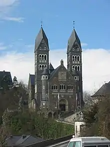 Luxembourg (/ˈlʌksəmbɜːrɡ/ ⓘ LUK-səm-burg; Luxembourgish: Lëtzebuerg [ˈlətsəbuəɕ] ⓘ; French: Luxembourg [lyksɑ̃buʁ] ⓘ; German: Luxemburg [ˈlʊksm̩bʊʁk] ⓘ), officially the Grand Duchy of Luxembourg, is a small landlocked country in Western Europe. It borders Belgium to the west and north, Germany to the east, and France to the south. Its capital and most populous city, Luxembourg, is one of the four institutional seats of the European Union (together with Brussels, Frankfurt, and Strasbourg) and the seat of several EU institutions, notably the Court of Justice of the European Union, the highest judicial authority. Luxembourg's culture, people, and languages are highly intertwined with its French and German neighbors; while Luxembourgish is the only national language of the Luxembourgish people and of the Grand Duchy of Luxembourg, French is the only language for legislation, and all three – Luxembourgish, French and German – are used for administrative matters in the country. With an area of 2,586 square kilometers (998 sq mi), Luxembourg is Europe's seventh-smallest country. In 2023, it had a population of 660,809, which makes it one of the least-populated countries in Europe, albeit with the highest population growth rate; foreigners account for nearly half the population. Luxembourg is a representative democracy headed by a constitutional monarch, Grand Duke Henri, making it the world's only remaining sovereign grand duchy. Luxembourg is a developed country with an advanced economy and one of the world's highest GDP (PPP) per capita as per IMF and World Bank estimates. The nation's levels of human development and LGBT equality are ranked among the highest in Europe. The city of Luxembourg was declared a UNESCO World Heritage Site in 1994 due to the exceptional preservation of its vast fortifications and historic quarters. Luxembourg is a founding member of the European Union, OECD, the United Nations, NATO, and the Benelux. It served on the United Nations Security Council for the first time in 2013 and 2014. (Full article...) Selected article -![]() Church in Clervaux, Luxembourg Christianity is the largest religion in Luxembourg, with significant minorities of non-religious people and adherents of other faiths. As of 2018, 73.2% of Luxembourg's population adhere to forms of Christianity (63.8% are Catholics, 1.8% are Protestants, 3.0% are Orthodox Christians while 4.6% adhere to other Christian denominations). 2.6% of the population are Muslims and 0.6% are followers of other non-Christian religions. 23.4% of the population do not have a religion. (Full article...)General imagesThe following are images from various Luxembourg-related articles on Wikipedia.