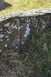 Dynamiting drill mark from Ole Hansen's attempt to convert the barrow to building blocks in 1859