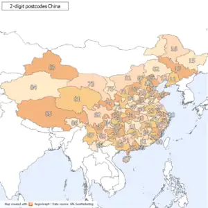Postal codes in the People's Republic of China (simplified Chinese: 邮政编码(邮编); traditional Chinese: 郵政編碼(郵編); pinyin: yóuzhèng biānmǎ (yóubiān)) are postal codes used by China Post for the delivery of letters and goods within mainland China.