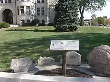 In Decatur, on Wednesday, September 26, one journal entry remarked: "We have reason to believe that the health of the camp is returning. The weather still continues delightful—the roads, however, are again becoming dusty....A child died after dark."[81][91] A historical marker named The Rock was placed in Mueller Park on Lake Shore Drive in 1994 by Zita and Bernard Wright.[93][94][95]
