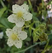 - ↑ Töpel, Mats; Lundberg, Magnus; Eriksson, Torsten; Eriksen, Bente (2011-05-16). "Molecular data and ploidal levels indicate several putative allopolyploidization events in the genus Potentilla (Rosaceae)". PLOS Currents. 3: RRN1237. doi:10.1371/currents.RRN1237. ISSN 2157-3999. PMC 3097082. PMID 21603100.
