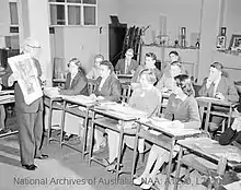 In 1960 Prahran offered diploma level Art & Design courses, which also attracted overseas enrolments.[6] A new trade block was opened in 1961 on the corner of St John and Thomas Streets, with a second stage finished in 1963. Trade courses it housed were Fibrous Plastering, Cabinet-Making, French Polishing, and Upholstery. Evening courses were also provided in Cabinet-Making and Home Wood Craft; Shorthand; Typewriting; Dressmaking; Invalid Cookery; Ticket writing; Display; Millinery and Preparatory Apprentice Class.