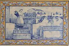 Azulejo showing a maiden collecting water from the fountain of São Bento