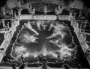 Until 1934, nudity involving "civilized" women, which was understood to mean white women, was generally banned, but permitted with "uncivilized" women, which was understood to mean non-white women.[196] Filmmaker Deane Dickason took advantage of this loophole to release a quasi-pornographic documentary Virgins of Bali in September 1932, which concerns a day in the life of two Balinese teenagers, who are presumably "uncivilized".[197] The film's introduction notes that Balinese women were normally topless and only covered their breasts for ceremonial duties; Doherty commented dryly that, "fortunately" for Dickason, his film's two "stars" rarely performed ceremonial duties. Typical of the film is the first scene where the two girls take a bath in the river while Dickason narrates, talking breathlessly about how the two girls "bathe their shamelessly nude bronze bodies".[198] Virgins of Bali, which consisted almost entirely of scenes of Balinese women in various states of undress under the guise of showing what daily life in Bali was like, was an immensely popular film with men at the time, and almost single-handedly made Bali into a popular tourist destination.[199]