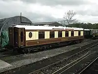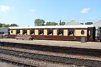 For Sale by tender, January 2017. Built with wooden frames and bogies, which would preclude running above 25 mph[18][19] Intended to become a restaurant at the former Folkestone Harbour railway station.[20]