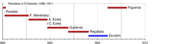 - ↑ "Presidentes de El Salvador – General Carlos Ezeta" [Presidents of El Salvador – General Carlos Ezeta]. casapres.gob (in Spanish). Archived from the original on 2 March 2009. Retrieved 14 July 2021.