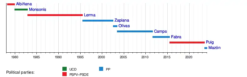 | During this interval, President Francisco Camps served as acting officeholder. | ||||||||||