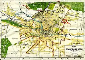 4. "Straßen". Adressbuch nebst allgemeinem Geschäfts-Anzeiger von Bromberg und dessen Vororten auf das Jahr 1915 auf Grund amtlicher und privater Unterlagen. Bromberg: A. Dittmann. p. 167.