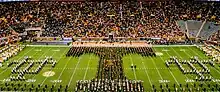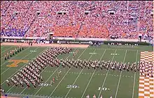 Although the T formation is used almost exclusively at UT home games in Neyland Stadium, it has been done at other venues, most notably at the 1986 and 1991 Sugar Bowl.