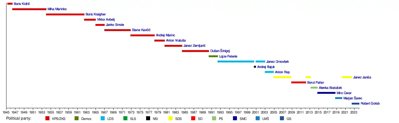Robert GolobMarjan ŠarecMiro CerarAlenka BratušekBorut PahorJanez JanšaAnton RopAndrej BajukJanez DrnovšekLojze PeterleDušan ŠinigojJanez ZemljaričAnton VratušaAndrej MarincStane KavčičJanko SmoleViktor AvbeljBoris KraigherMiha MarinkoBoris Kidrič