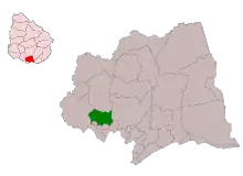 The city is located on the old Route 5 (which runs parallel to the railway track Montevideo - Santa Lucia), about 29 kilometres (18 mi) from the centre of Montevideo. It belongs to the wider metropolitan area of Montevideo.