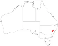 This mint bush grows in forest in forest in sandy soil near watercourse on the Central Tablelands and nearby Central West Slopes of New South Wales.[2][3][4]