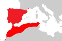 Psammodromus algirus is found in North Africa (Morocco, Algeria, and Tunisia) and in Southwestern Europe (Iberian Peninsula: Portugal, Spain, Andorra, Gibraltar; southernmost France, and Italy near Lampedusa).[2]