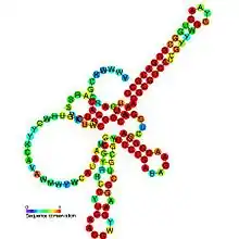 Pseudomonas sRNA P11 is a ncRNA that was predicted using bioinformatic tools in the genome of the opportunistic pathogen Pseudomonas aeruginosa and its expression verified by northern blot analysis.[1] P11 is located between a putative threonine protein kinase and putative nitrate reductase and is conserved in several Pseudomonas species. P11 has a predicted Rho independent terminator at the 3′ end but the function of P11 is unknown.[1]