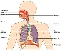 - 1 2 3 Labiris, N. R.; Dolovich, M. B. (2003). "Pulmonary drug delivery. Part I: Physiological factors affecting therapeutic effectiveness of aerosolized medications: Physiological factors affecting the effectiveness of inhaled drugs". British Journal of Clinical Pharmacology. 56 (6): 588–599. doi:10.1046/j.1365-2125.2003.01892.x. PMC 1884307. PMID 14616418.