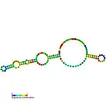 - ↑ Weinberg Z, Barrick JE, Yao Z, et al. (2007). "Identification of 22 candidate structured RNAs in bacteria using the CMfinder comparative genomics pipeline". Nucleic Acids Res. 35 (14): 4809–4819. doi:10.1093/nar/gkm487. PMC 1950547. PMID 17621584.