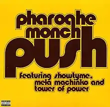 "Push" is the first single from Pharoahe Monch's 2007 album Desire. The single was released September 11, 2006 as a 12" vinyl, but was later released as a CD single and a digital download. Produced by Pharoahe Monch, the song features an upbeat sound and a prominent use of horns played by Tower of Power. It features encouraging raps provided by Pharoahe Monch as well as background vocals sung by MeLa Machinko and Showtyme. The song contains an interpolation from Joe Zawinul's "Country Preacher." Its music video, directed by Paul Minor, features Monch rapping during the New York City blackout of 1977. The song is also featured in the NBA series 2007 video game NBA Street Homecourt.