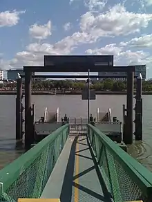 The wharf was destroyed during the January 2011 Brisbane floods.[3] A temporary replacement opened on 18 April 2011.[4][5] The temporary wharf closed in early 2015 to allow a new permanent wharf to be built. The new wharf opened on 24 April 2015.[6] The terminal was damaged in the 2022 eastern Australia floods and reopened on 1 November 2022.[7]